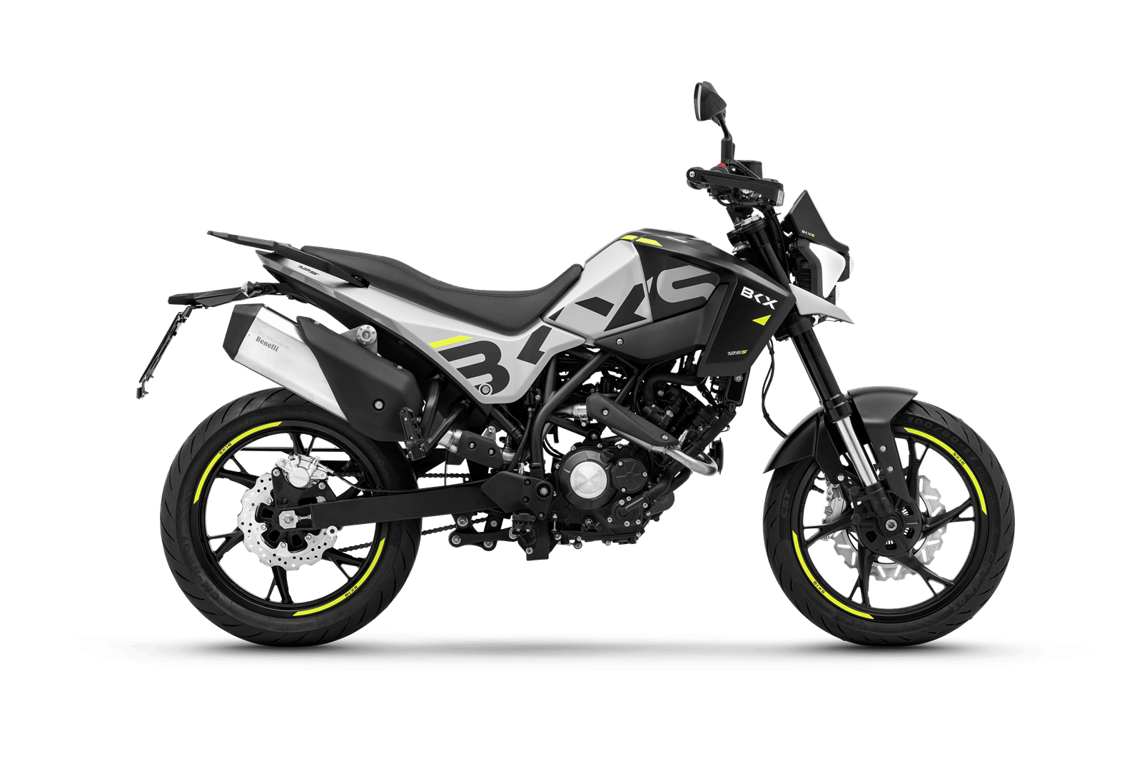 El chasis multitubular de acero de la BKX 125 S ofrece estabilidad y precisión en cada cambio de dirección. Incorpora suspensión trasera regulable y una horquilla delantera de Ø 41 mm totalmente ajustable, un equipamiento premium en su segmento. Las ruedas de 17” con neumáticos de carretera completan un conjunto pensado para ofrecer agilidad y control.